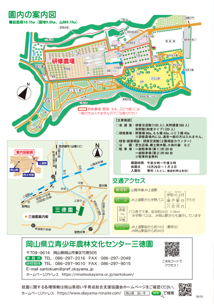 岡山県立青少年農林文化センター 三徳園(農業研修担当 あて)